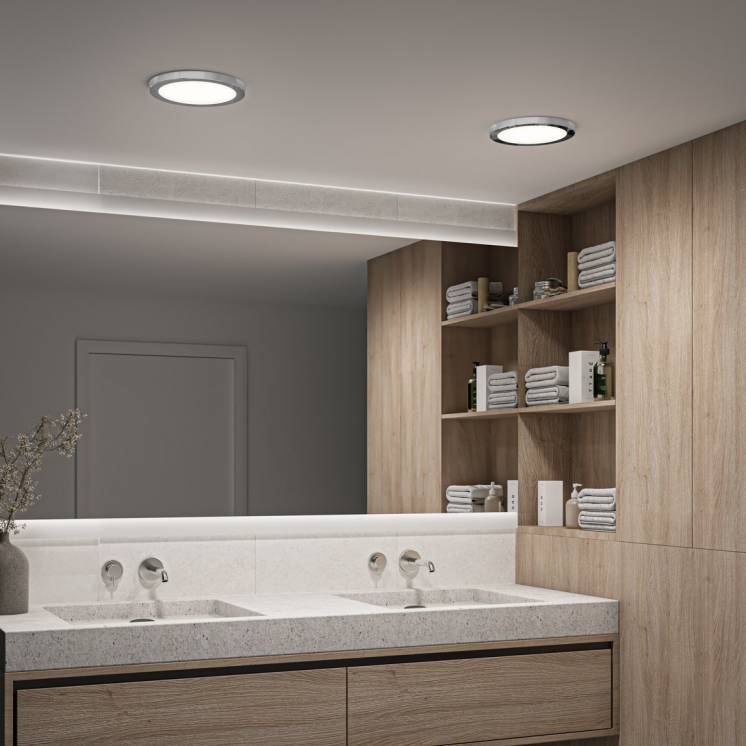 This set includes 2 LED ceiling lights and does not require any bulbs. It delivers a brightness of 1200 lumens. The lifespan is 50,000 hours.